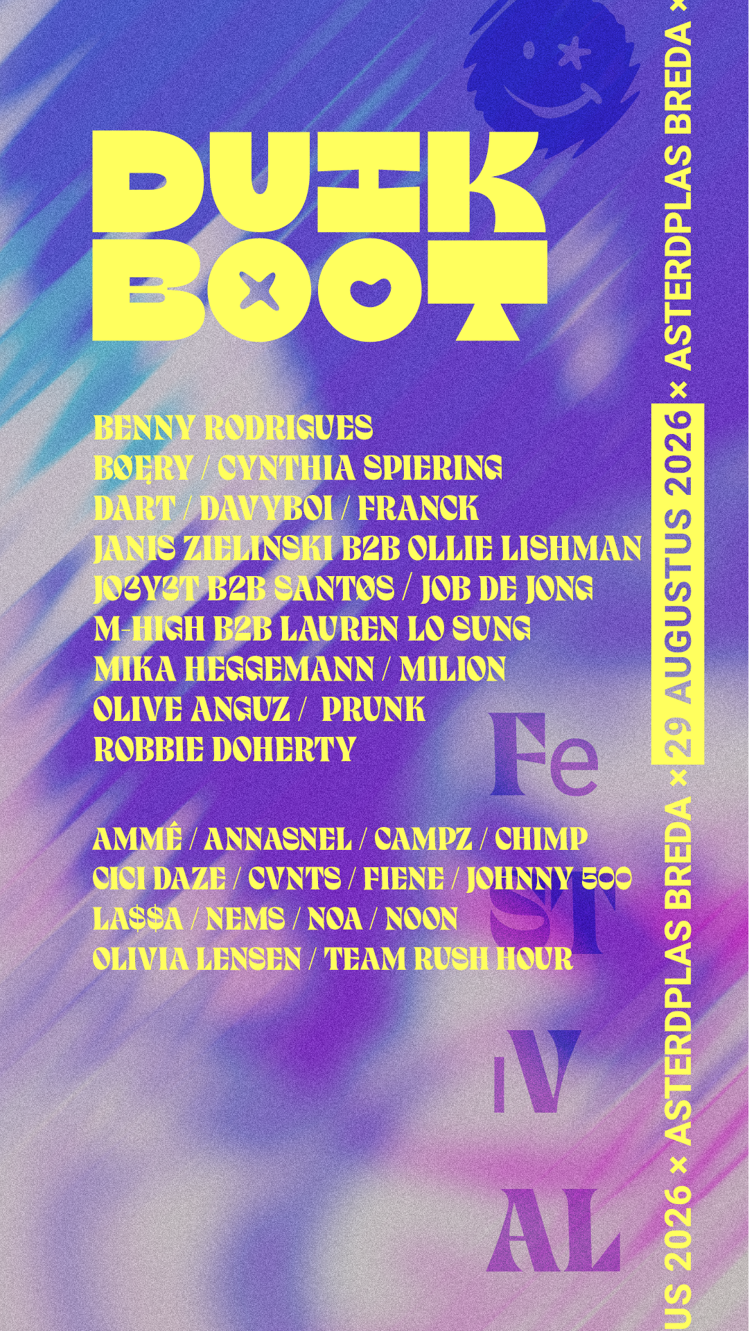 De volledige line-up van Duikboot Festival 2026 is hier! Check het & duik 29 augustus diep met ons op Playa del Asterd.